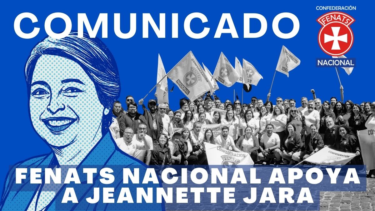 La Confederación Nacional de Trabajadores de la Salud, FENATS Nacional, concluida su asamblea nacional, la que conto con participación de toda nuestra estructura, representada en más de 80 dirigentes/as  de federaciones y bases de todo el país, desde Iquique a Puerto Williams, frente al actual escenario político de nuestro país el que nos obliga a tomar una decisión,  considerando además  el conocimiento público del programa anti- Trabajadores que ha presentado el Candidato de la Ultraderecha José Antonio Kast;  se ha resuelto de manera democrática, consciente y unitaria pronunciarnos públicamente en apoyo a la candidatura presidencial de Jeannette Jara.