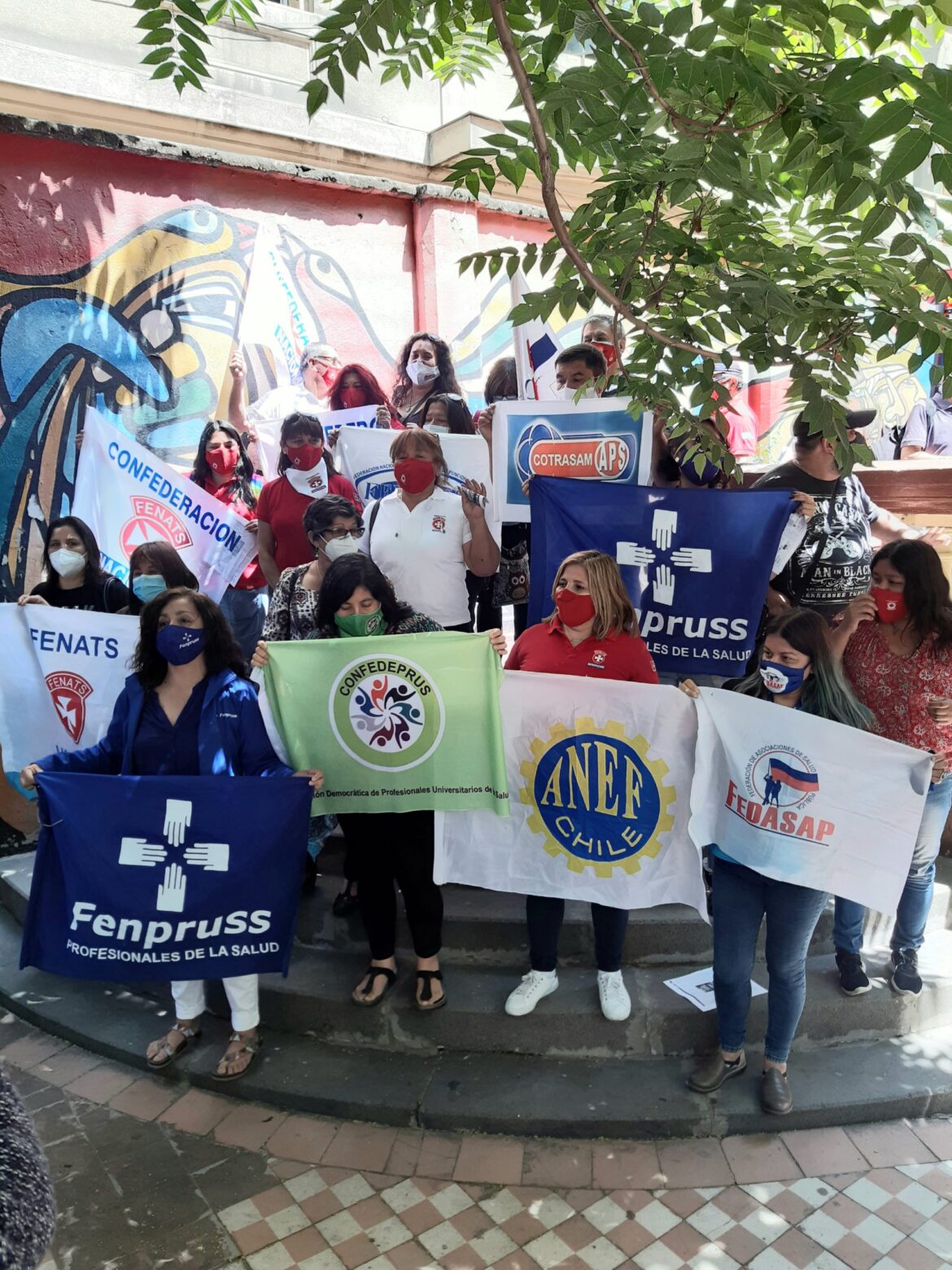 En la conferencia también participaron las dirigentes Lorena Pérez, de Conatrasanaps, Miriam Molina, de la Fenats Unitaria y Carmen Luz Escaf, de la Fedasap, quienes llamaron a los trabajadores a mantenerse más unidos que nunca y a participar de las actividades, respetando las normas de seguridad necesarias. Consuelo Villaseñor, de la Confedeprus, asociación que ayer sufrió la detención de tres de sus socios por manifestarse frente al Minsal y Beatriz Morales, de la Fentess, gremio de los tens, que también registró un detenido.