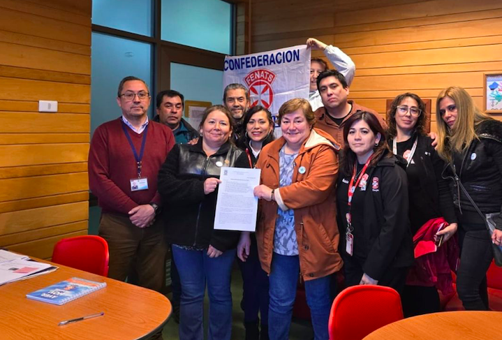 Nuestro secretario de organización, Óscar Riveros, junto a Carmen Moya, secretaria de Actas, llegaron hasta el Hospital Kalvu Llanca de Cañete, región del Bío Bío, para acompañar a nuestras y nuestros compañeros de la Base de FENATS Nacional de ese establecimiento en reunión con el director y solucionar problemáticas que afectan a las y los trabajadores. En particular, logramos firmar un acuerdo para impedir la posible desvinculación de una funcionaria con antecedentes de buen desempeño laboral.